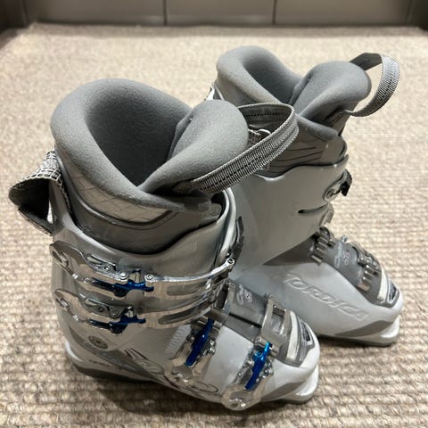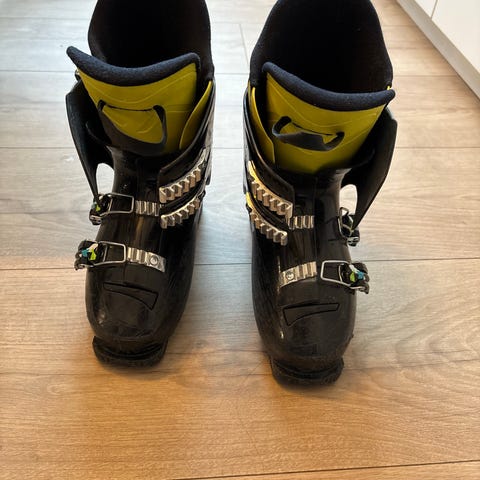 Dalbello CX 3 alpinstøvler i størrelse 22,5. Støvlene har svart og hvit fargekombinasjon med røde detaljer. Utstyrt med spenner for justering og god passform.
