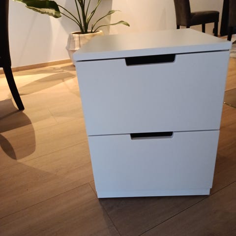 Hemnes kommode i svart/brun med 2 skuffer. Stødig og fungerer upåklagelig men med noen få bruksmerker.