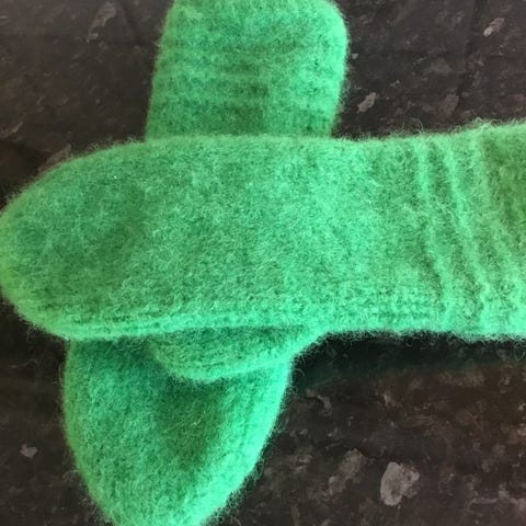Votter strikket i Rauma vams garn til salgs.