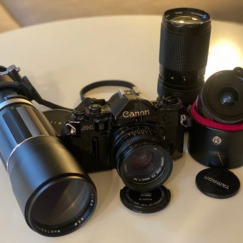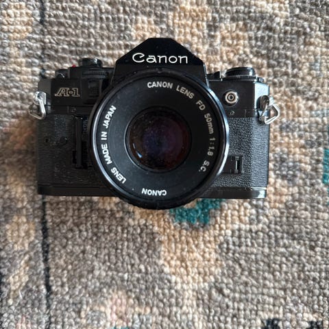 Canon A-1 + Canon FD 50mm f/1.8 – fungerende, meget pen stand