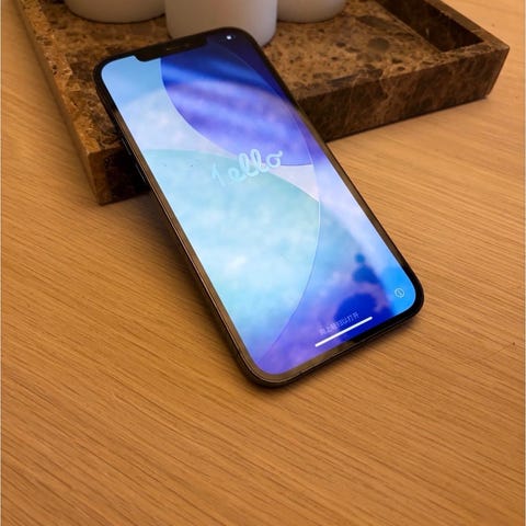 Iphone 12 Pro Max 256 GB i blå til salgs. Under 1 år gammel. Fikk en helt ny mobil av Apple da de ikke klarte å reparere min gamle mobil. Ingen merker eller riper. Har alltid brukt deksel og skjermbeskytter. Maks batterikapasitet 90%