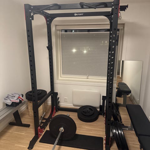 Selger dette treningsutstyr med benk og 130 kg sammen med 2 forskjellige nakkestøtter