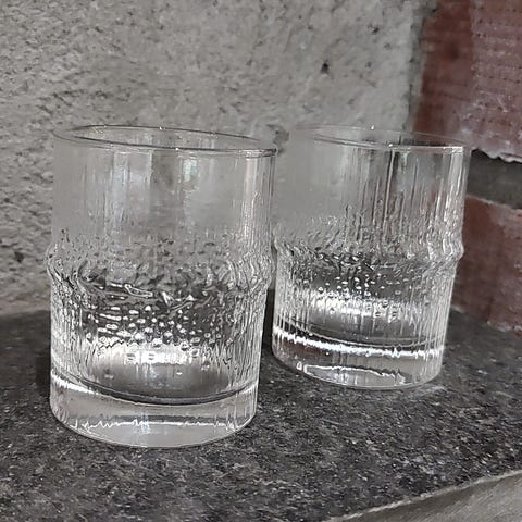 2 stk Iittala Niva glass. Glassene er laget av klart glass med et teksturert, iskrystall-inspirert mønster. Designet for bruk til servering av drikkevarer.