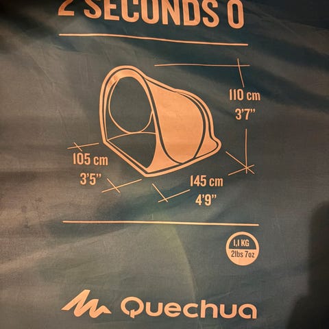 Pent brukt, men med et lite hull i ytterposen. Ikke skader på selve teltet.