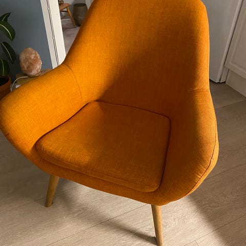 Superkul lenestol som er meget god å sitte i. Har et retro preg og er kjøpt brukt. Stolen har noen bruksmerker og kunne trengt litt kjærlighet, men fremstår fortsatt fin og fullt brukbar.