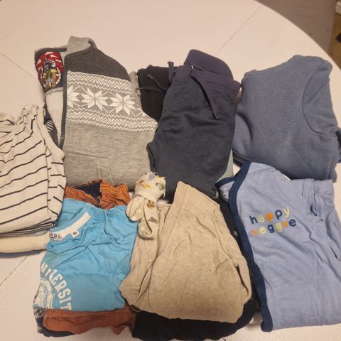 Bla 4 bodyer og balaclava i ull, Spiderman-jakke, fine og lite brukte dongeribukser, 9 bodyer osv