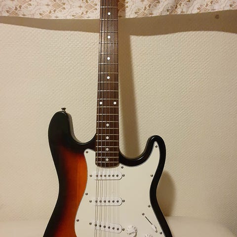 - Da starcaster kommer originalt med lengre halser enn strat halsene, så er det gap mellom enden på halsgrop og hals. Halsen har flere hull da jeg måtte prøve meg frem for å finne optimalt gap for å kunne intonere skikkelig. Derav blyantmerkene på hals.