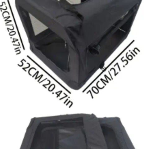 Sammenleggbar hundebur i metall med svart farge, plast bunn. Buret kan foldes sammen for enkel oppbevaring og transport.
