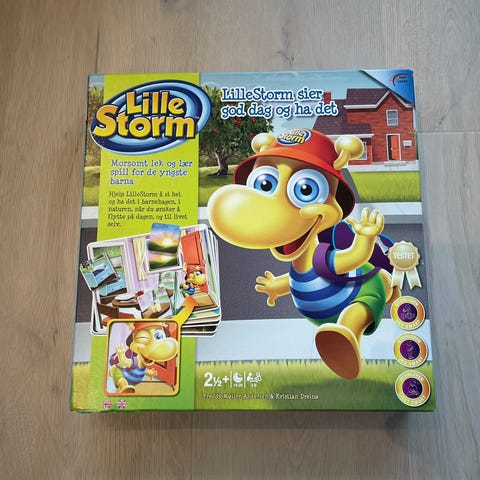 Lille Storm Memory spill med tema for barn. Spillet inneholder kort med bilder som skal matches for å trene hukommelse og konsentrasjon.
