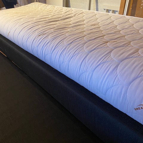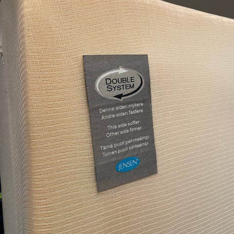 Jensen rammemadrass, Jysk overmadrass/ wellpur. Overmadrassbeskytter og laken følger med.