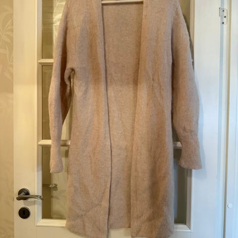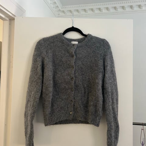 H&M Alpaca Blend cardigan i grønn farge, størrelse XS for kvinner. Laget av alpakkaull, gir varme og komfort. Cardiganen har knapper foran og to lommer.