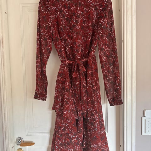 Små hvite og lyserosa blomster på mørkere rosa bakgrunn. Kjøpt på Hobbs i London for 329 pund, dvs ca 4400 kroner. Brukt 2 ganger.