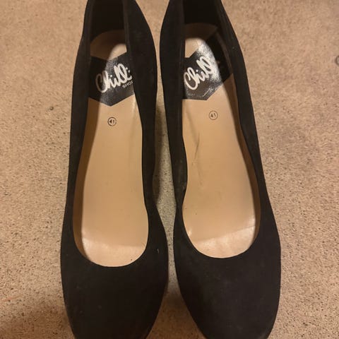 hæler i størrelse 41 med glitter på hæl og såle. Semsket følelse, kun brukt inne 1 gang. Fremstår ubrukte og nye.