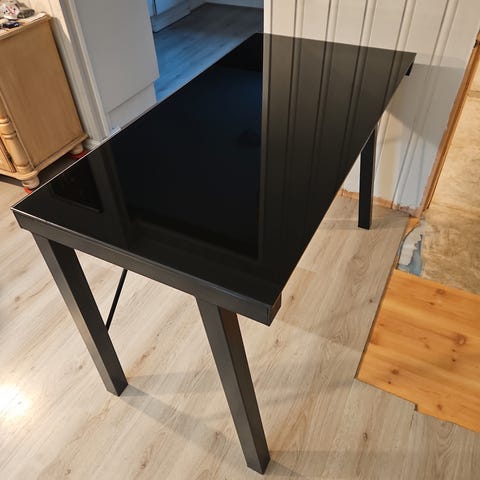 Pent skrivebord. Mangler en skrue til avstivning bak(se bilde), så vingler litt. Med en ny skrue så er den god som ny.