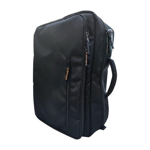 Ryggsekk i svart stoff med flere rom og justerbare skulderstropper. Designet for praktisk oppbevaring og komfortabel bæring. 38 liter. Ny pris 549 kr.