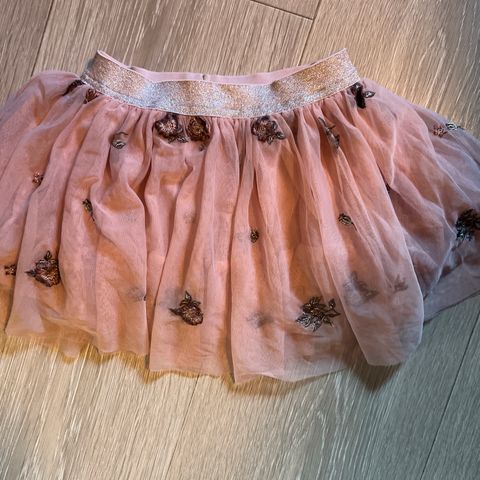 SR ullskjørt i størrelse 110 for jente, med grå farge og mønstret design. Laget av ullmateriale som gir varme og komfort.