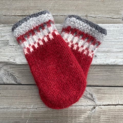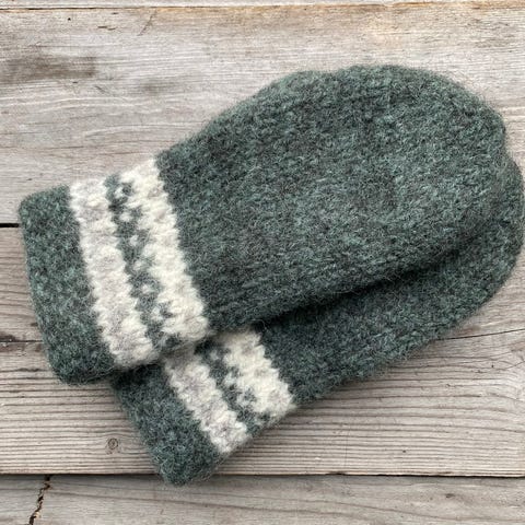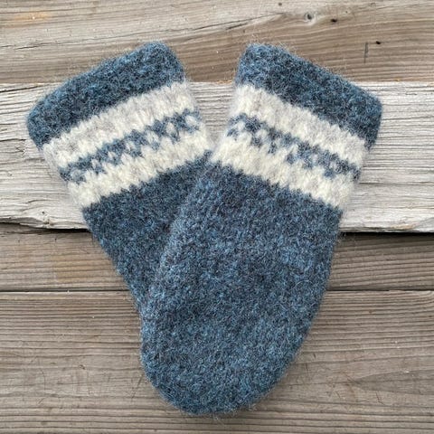 Fine tovede votter til barn, håndstrikket i 100% norsk ull, kvalitetsgarnet Vams fra Rauma.
