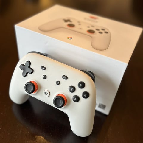 Dette er en kvalitetskontroll produsert av Google, opprinnelig til deres "Stadia" system (som er avsluttet). Kontrollen er konvertert til å fungere som en vanlig Bluetooth kontroller, og kan brukes på enheter som har Bluetooth tilkobling. (For mer info rundt dette, les evt: https://gamersguide.medium.com/how-to-convert-your-stadia-controller-to-bluetooth-in-2024-gamers-guide-ea6a423a314a ).