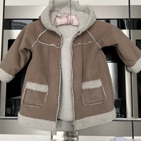 Chloé barnejakke i størrelse 104 , laget av ullmateriale. Jakken er grå og designet for jenter.
