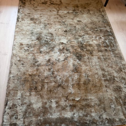 Pent teppe selges, 2 sirkelmerker på teppet etter at foten på bordet har stått der. Teppet er ellers i god stand. Farge: Grå. Kjøpt i 2019. Ny pris: 6700 kr.