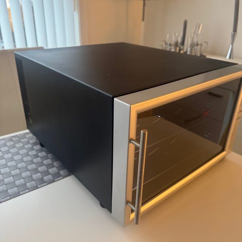 Produktet har magneter bak, og kan derfor plasseres enkelt på for eksempel et kjøleskap eller vinskap.