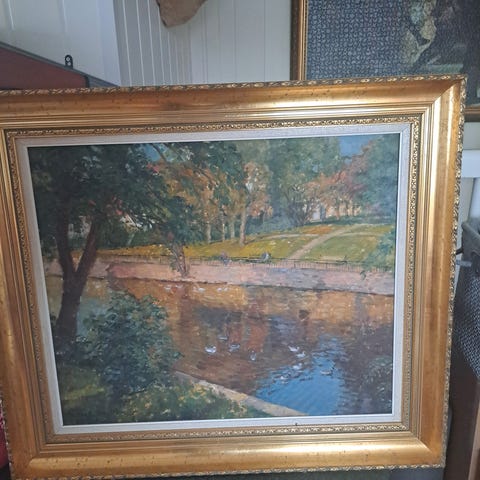 Rioters Art Gallery oljemaleri som forestiller en mann med drikk. Maleriet har dimensjonene 59 x 70 cm. Ramme med dekorativ utforming følger med.