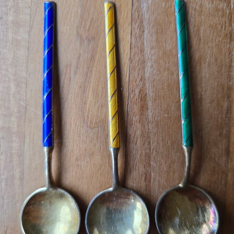 Nydelige emaljerte sølvskjeer fra J. Tostrup