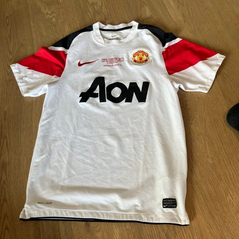 Drakten er selvfølgelig ekte, og det er lagt ved bilde av den karakteristiske blå Umbro-merkelappen i nakken, som beviser at drakten er autentisk.