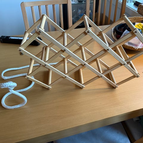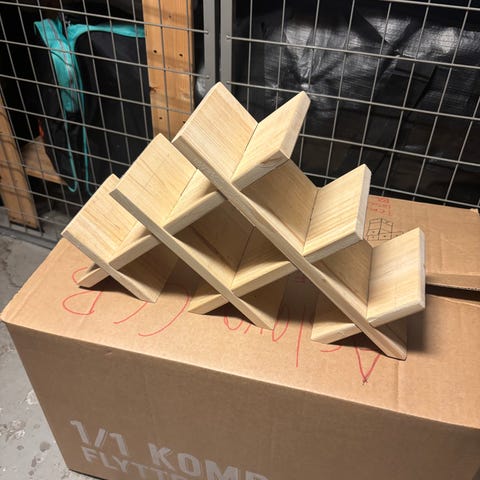 Selger et funksjonelt og fint vinstativ i tre. Passer til 8 flasker.