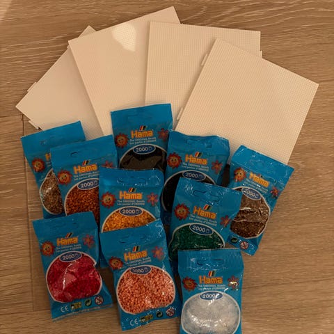 Hama midi perler og 5 ulike brett selges samlet for 125kr. Hentes Konnerud eller sendes