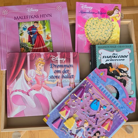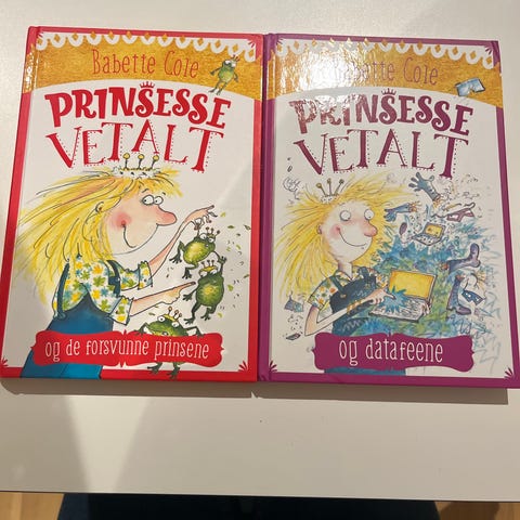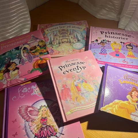 En samling barnebøker med titler som Prinsesse Vetalt, Level Up!, Mysteriet i klubbhuset, og Amelies revansje. Bøkene er illustrert og inneholder historier med ulike temaer som eventyr, mysterier og vennskap.