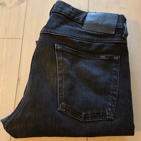 Dette er jeans av svært høy kvalitet, produsert i Japan-denim med solid konstruksjon og flott struktur i stoffet. Nypris var 2 800 kr, men selges fordi fargen dessverre ikke passer meg helt.