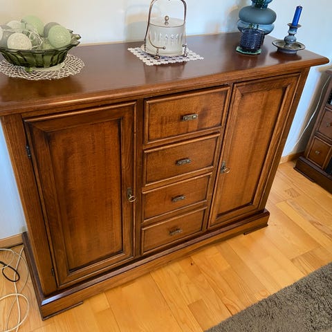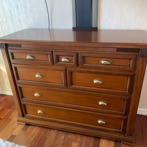 Solid kastanje farget kommode i heltre. Kan også passe som TV benk.