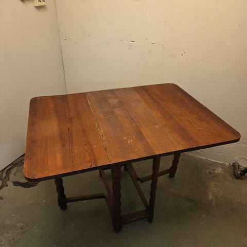 Spisestue i flammebjørk fra 1946. Spisestuen har 6 stk stoler og 4 stk ileggsplater. Med alle 4 platene inne, så blir bordet ca 4 meter langt. Det følger også med 3 stk skjenker i forskjellige størrelser. Her har du godt med plass til servise, sølvtøy, glass, vaser og annet du måtte ønske. Den ene stolen har en skade, men den påvirker ikke bruken. Målene på alle delene kan ses i det ene bildet. Må hentes i nærheten av Lillestrøm.
