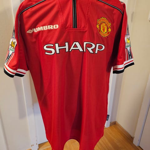 Selger en helt vanvittig flott Manchester United hjemmedrakt, som ble brukt i perioden 1998-2000, i størrelse XL. Drakten har selveste "Beckham 7"-navnetrykk på ryggen, og "Champions 1998-1999"-patcher på ermene.