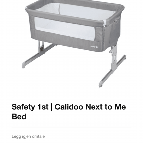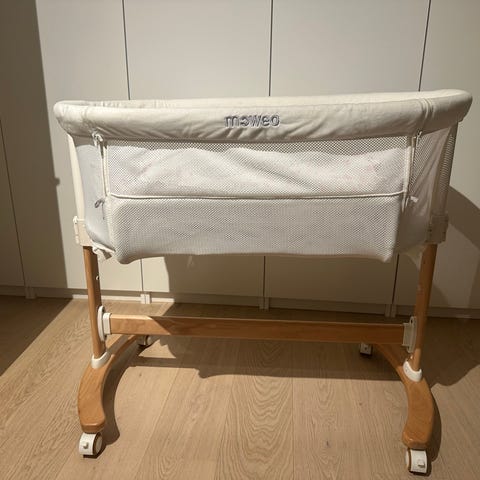 Nyvasket og uten flekker, vi fikk ikke til stroppesystemet som fulgte med sengen, men har gått helt fint med å bare bremse hjulene på rammen.