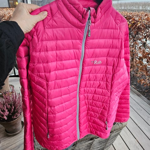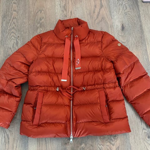 Flott og varm dunjakke med lekker pelskant (avtagbar) på hetta. Gode lommer.