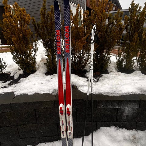 Fischer langrennsski med lengde på ca.165cm og gul farge. Skiene er utstyrt med bindinger og leveres sammen med staver ca. 120cm. Egnet for langrenn og vinteraktiviteter.