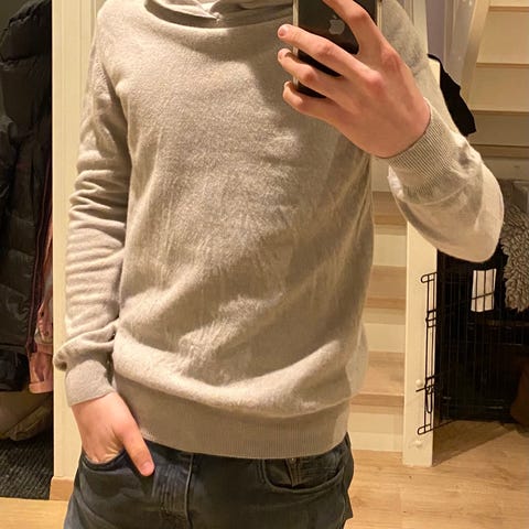 Oscar Jacobson Pascal hoodie i beige farge, størrelse S. Pent brukt uten merker/skader. 90 % ull og 10 % kashmir. Litt liten i størrelsen.