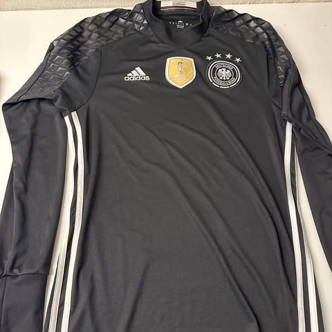 Adidas Die Mannschaft fotballtrøye i størrelse S. Trøyen har en slim fit passform og er egnet for fotball. Den er hvit med svarte og røde detaljer.
