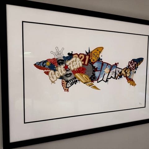 Signert kunsttrykk Animal av Harem vurderes solgt. Trykket er innrammet med hvit passepartout og svart ramme. Artglass 70. Kjøpt hos Bergen Contemporary. Nummerert 10/30 og signert av kunstneren.