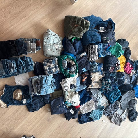 Selger en klespakke til barn. Klærne er stort sett i str. 98-104. En shorts i str. 92 brukt på samme tid.