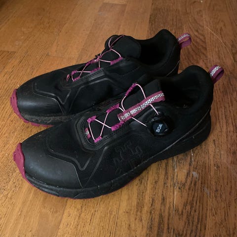 Icebug Metro2(brede)BUGrip størrelse 39. Skoene har cognac farget overdel i semsket skinn med glidelås på siden for enkel på- og avkledning. Sålen er utstyrt med pigger for trygt grep og stabilitet, egnet for bruk på glatte underlag.