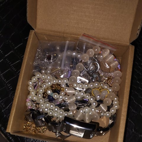 Smykkeskrin, hårstrikk, hårspenner, armbånd, smykke. Selges samlet.