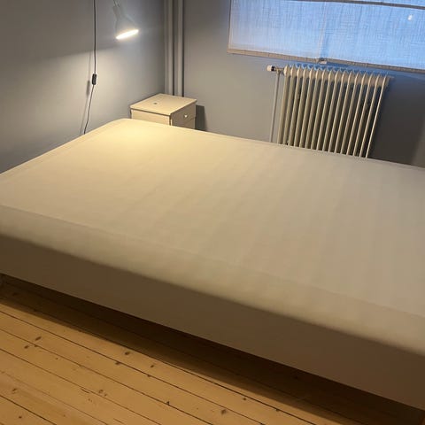 IKEA rammemadrass 200x 140. 10 år gammel, synlig brukt, men funker helt fint enda. Har fått flekker på sidene etter å ha stått inntil yttervegg. Må hentes i 4.etg uten heis.