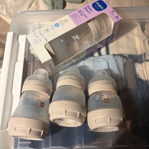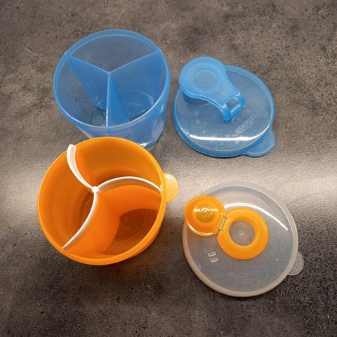 Boks for å oppbevare melkeerstatning i. Holder 3 doser.
