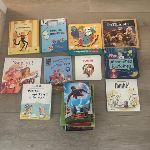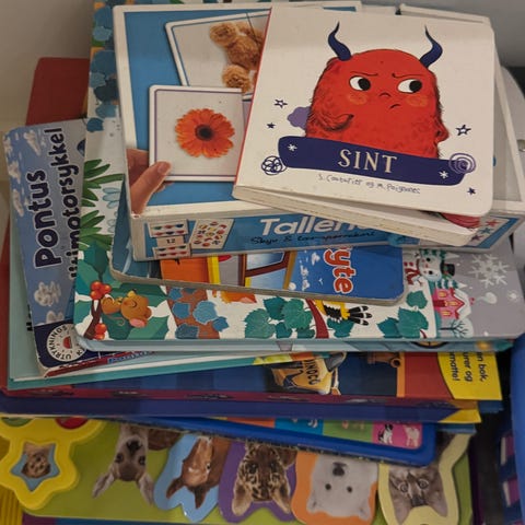 Utvalg av barnebøker, noen spill/puslespill! Et par voksen foreldremøter også. Må hentes.