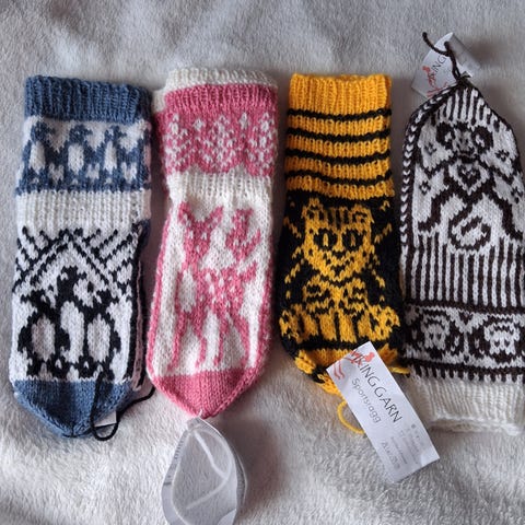 Hjemmestrikkede ullsokker. Str 36.