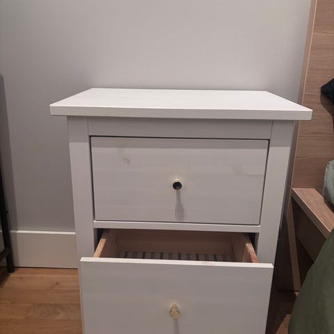 To pent brukte nattbord med praktisk oppbevaring under. Tror de er en tidligere kolleksjon fra Ikea. Selges samlet. Kan hentes på Grønland.