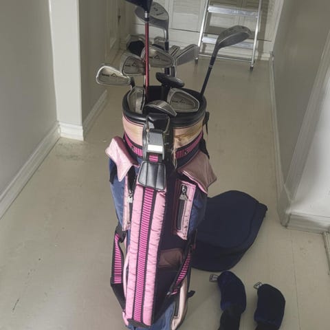 Køllene er brukt, men i god stand med normale bruksmerker. Alt fungerer som det skal. Bagen er som ny, kun brukt et par ganger.